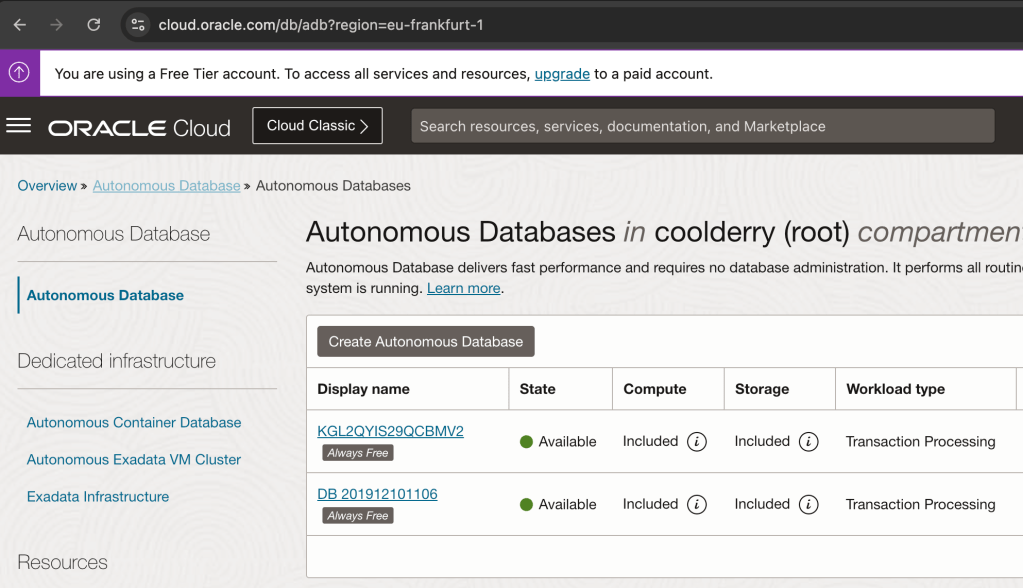 This handler works with Autonomous Database using their hosted ORDS with 23ai. That’s the simplest and most convenient to get started with this example although you can run this on your own infrastructure.
