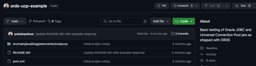 This test could be used with the standard Oracle JDBC/UCP distributed jars but the original intention is use the jars that are distributed with ORDS. Your version of ORDS might be different so the README shows steps to find the exact jar names to use.