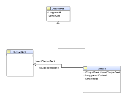 I learned this the hard way when I found a delete operation took too long and eventually timed out in a test environment that had a high volume of records. A review of the code showed a nice, clean object oriented design and a very simple, easy to understand ORM configuration. The application in question was used to manage financial documents. It had the concept of a ChequeBook, one or more Cheques in a ChequeBook, but also that both a ChequeBook and Cheque were a Document. The class diagram in this article illustrates that relationship. The relationship was also reflected in the database with corresponding tables. The ‘type’ attribute was used as a discriminator for the two concrete objects: ChequeBook and Cheque.